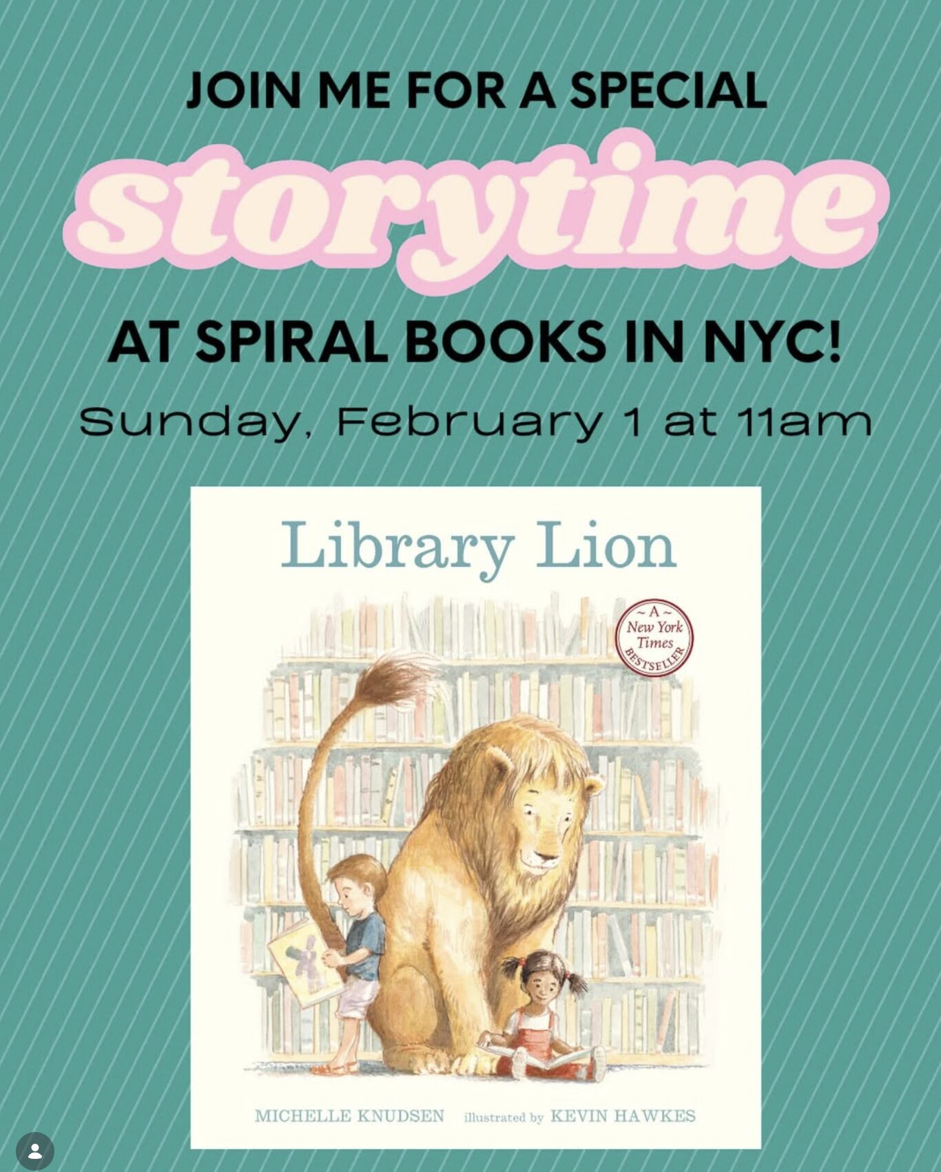 Join Mikki Knudsen at Spirial Books for a storytime reading of her award-winning picture book, Library Lion.